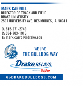 I am building a strong team here at Drake and have quite a few scholarships available especially on the women’s side. I already have athletes from Ireland, France, Austria, Germany, Botswana, Nigeria, Zimbabwe, Australia and about to have athletes from Hungary and England.