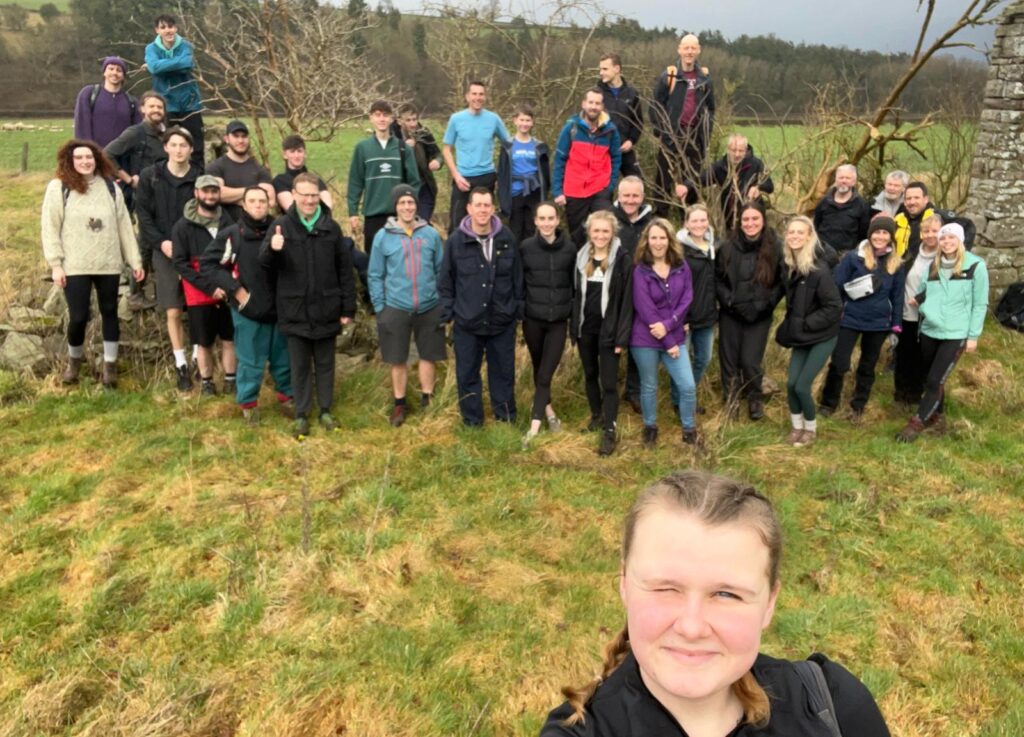 Running shoes were swapped for walking boots as the whole group set off for the traditional 5 mile hilly walk to Glasbury and back, pausing only for Poppy’s annual group selfie and a quick pint at Foyles pub.